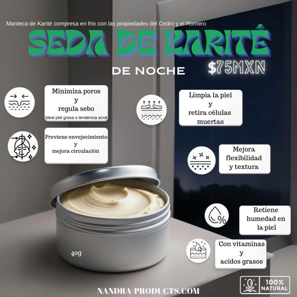 - Noche: Se recomienda aplicar la manteca de karité por la noche para que la piel pueda absorberla durante el sueño.