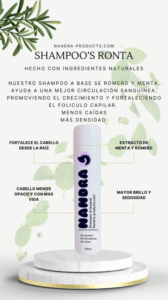 La nueva formula de Ronta, te permite seguir cuidando de manera natural tu cabello, sin necesidades de sales, parabenos, alcohol o algun otro químico que haga daño a largo plazo a tu cuero cabelludo.